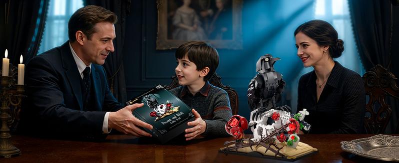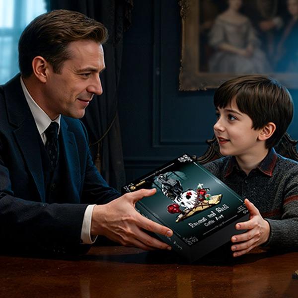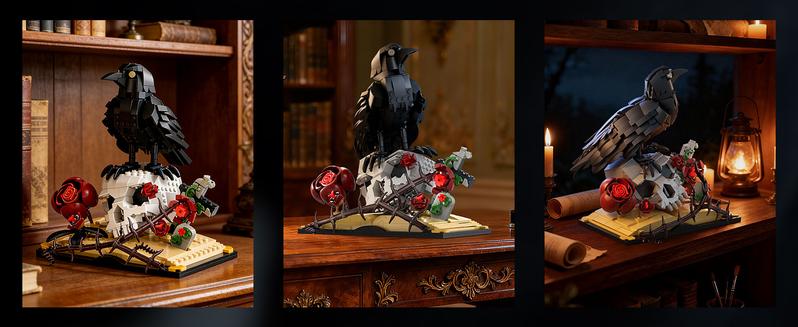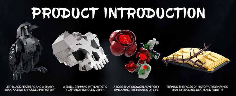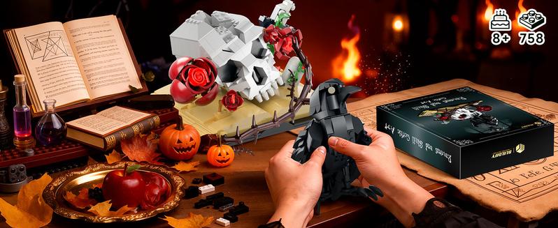 758 PCS Set: This building set includes 758 pieces, featuring crow skulls, roses, and books. Perfect for creating an eye-catching table centerpiece.