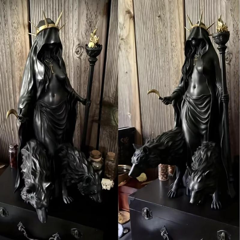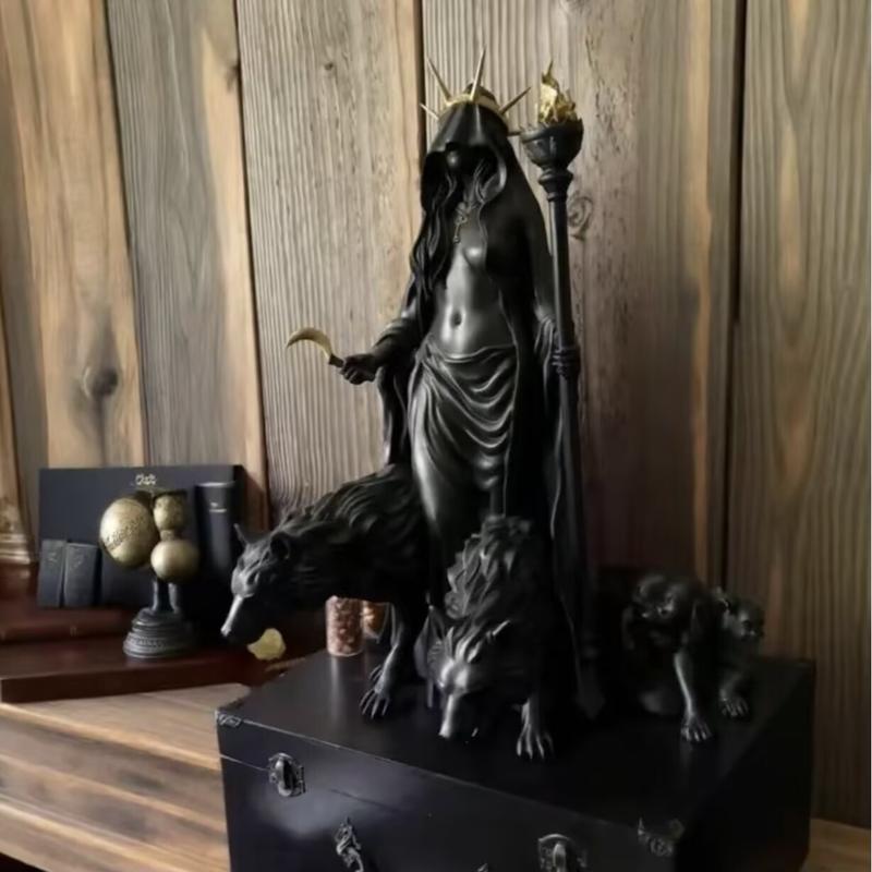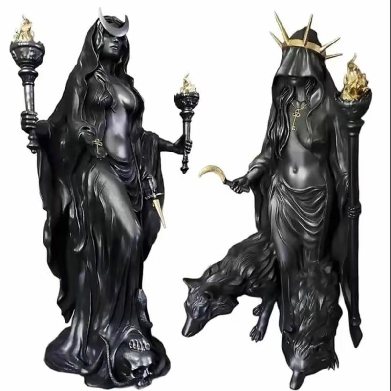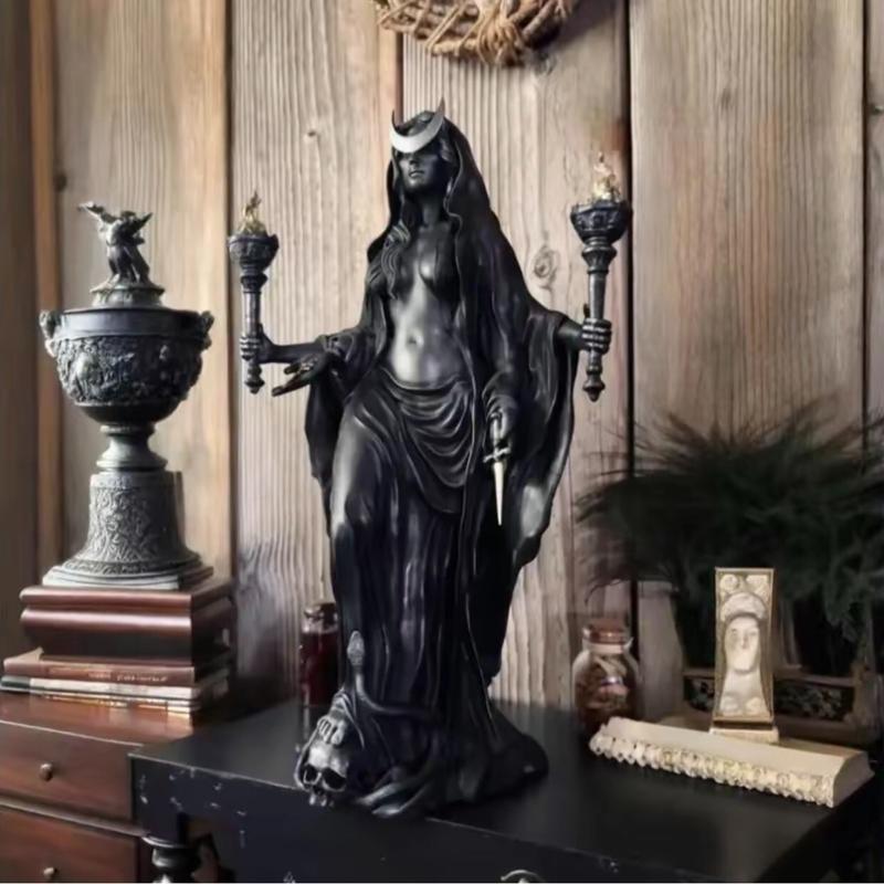 【Gothic Inspiration】: This statue features a striking depiction of Hecate, the goddess associated with magic and witchcraft.